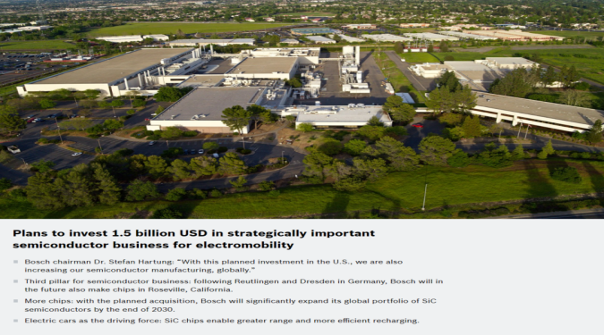 4月26日,博世官網(wǎng)發(fā)布公告,公司計(jì)劃收購(gòu)位于加利福尼亞州羅斯維爾的美國(guó)芯片制造商 TSI Semiconductors 的資產(chǎn)。該公司擁有 250 名員工,是專用集成電路 (ASIC) 的代工廠。目前,它主要開發(fā)和生產(chǎn) 200mm硅晶圓上的大量芯片,用于移動(dòng)、電信、能源和生命科學(xué)行業(yè)的應(yīng)用。
